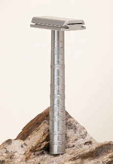 3-piece double edge safety razor with an closed comb head.  designed to shave at 30 degrees. 68 mm [.027”] Blade Gap and .033 mm [.0013"] Blade Exposure Weight: 37g / 1.3 oz. Anodised aluminium, CNC machined in Canada. £75.00 (ex.VAT 62.50)