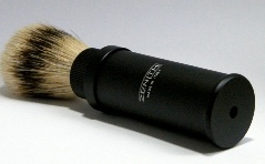 Silvertip Badger shaving brush Black anodised Aluminium handle/case: 75 mm(h) x Ø 30 mm (approx) Knot (at base): 21 mm | Loft: 50 mm TRAVEL SB